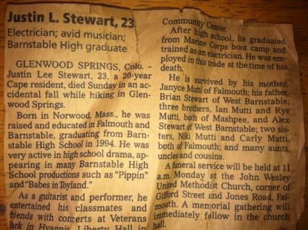 Last night, we closed Sans Merci with a great performance to a sold out audience. Tonight, we say goodbye to Honey Fist, a play inspired in part by the life and death of my high school friend Justin Stewart. I share his obituary here because there is so little about him online: