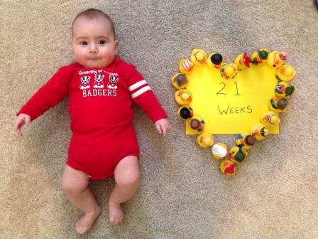 At twenty-one weeks, she is an amazingly alive baby. I got home just in time to rock her and sing a lullaby, and she lit up with happiness to see me, and fell asleep gently…though of course, she didn’t stay asleep gently. She continues to wake up several times throughout the night, a phase we’re not entirely sure how to break.