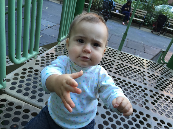 It’s hard to express just how amazing; that this creature that once could barely open her eyes is now confidently toddling forward. She’s a physically-daring 13 month old kid, and after her feet of toddling earlier in the day, she spent our afternoon trip to the playground race-crawling up jungle gyms and careening down slides.